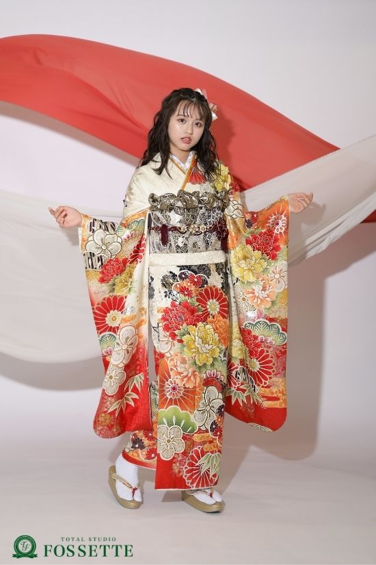 清楚で上品なイメージの白地の振袖に、品のある鮮やかな色とりどりの お花が散りばめられたゴージャスな振袖♪ 【取扱い店舗】 F-1501-RO▶川内店・五日市店・広島店・イオンモール広島祇園店 F-1551-RO▶フォトプラザ店・ポートピアパーク店・イオンモール広島府中店・西条ブールバール店